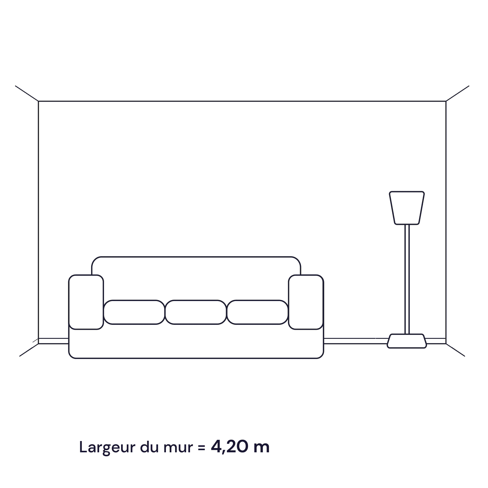 Donc : 1,50 m x 3 = 4,50 mètres, suffisant pour recouvrir un mur de 4,20 m.